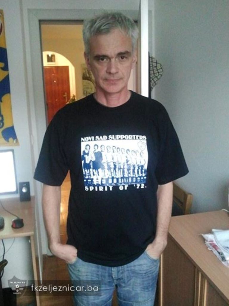 Ispod je fotka na kojoj Gale nosi majicu koju je napravio za raju prije dvadesetak godina. Na teget podlozi je slika šampionskog tima “Želje” iz 1972. godine. Iznad piše: “Novi Sad Supporters”. A ispod: “Spirit of ‘72”. I danas je imam i danas je nosim. Što ti je kvalitet.